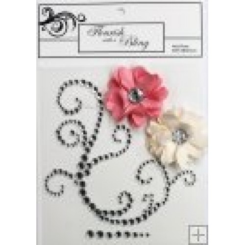 Elise flourish consists of 1 rhinestone flourish with 8 individual rhinestones in 4 different sizes and one pink and one cream flower