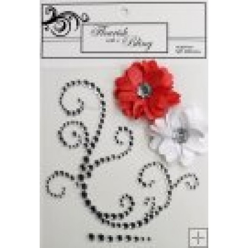 Elise flourish consists of 1 rhinestone flourish with 8 individual rhinestones in 4 different sizes, and one orange and one white flower